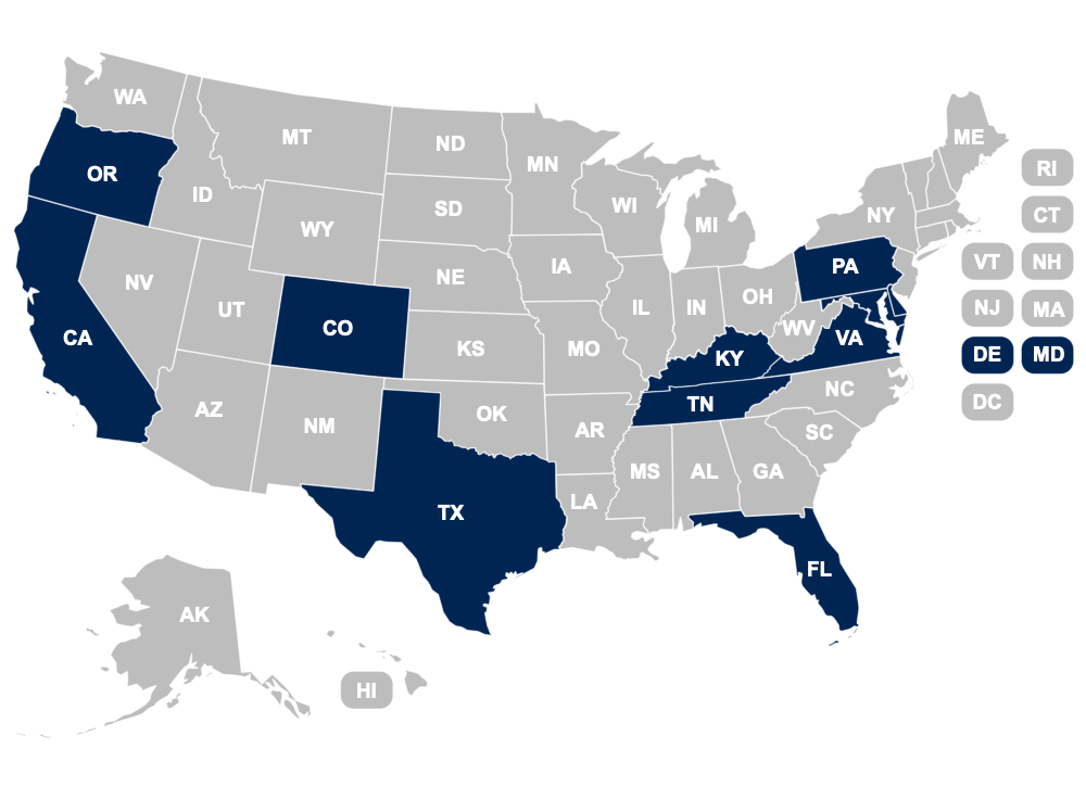 Licensed in 11 States Across the United States
